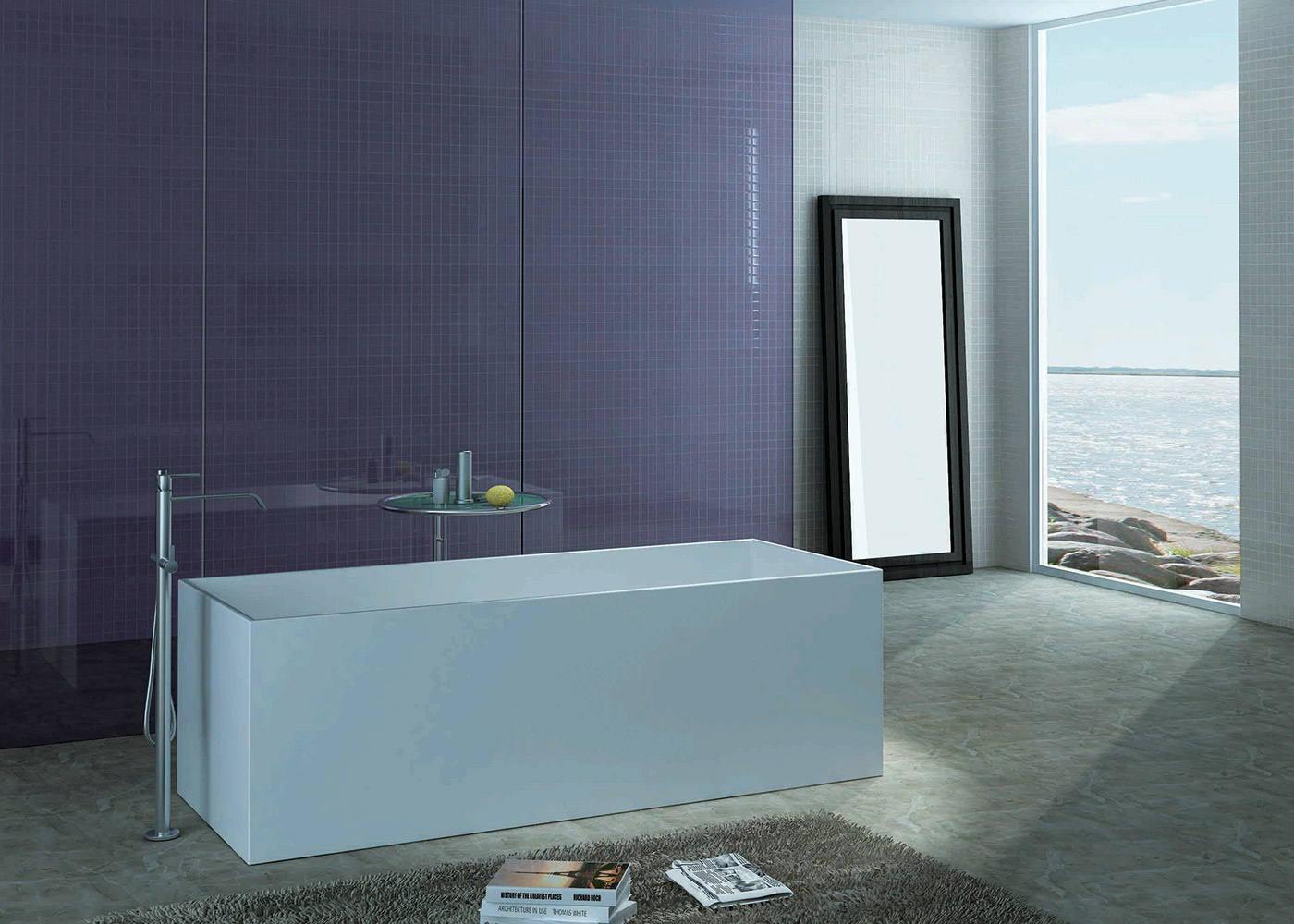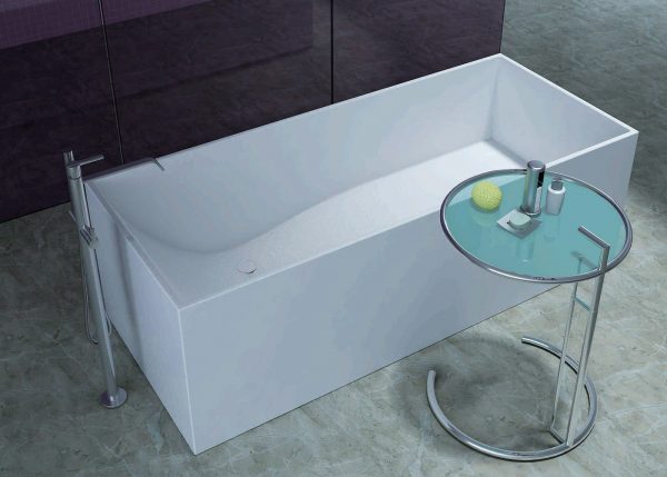 The Cube bath is made from our eco-friendly non-porous composite stone material. Created from our unique blend of reclaimed marble, limestone and engineered resins, our composite stone offers great heat retention, durability, and is environmentally friendly. This carefully handcrafted material results in a finished product that looks exquisite while also being practical and long lasting.