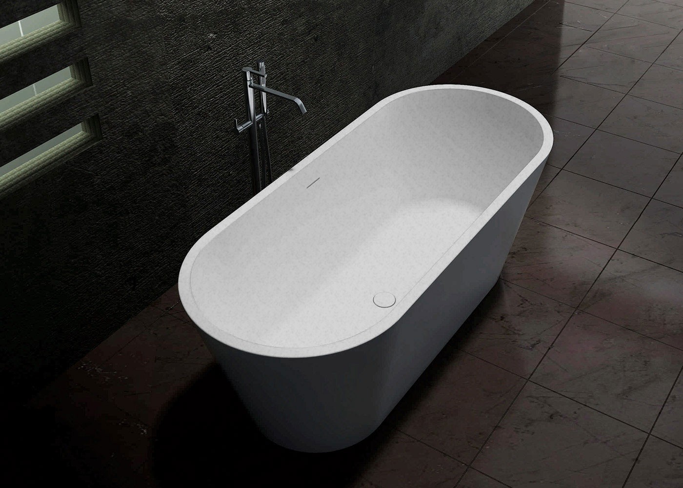 The Olive freestanding bath is made from our eco-friendly non-porous composite stone material. Created from our unique blend of reclaimed marble, limestone and engineered resins, our composite stone offers great heat retention, durability, and is environmentally friendly. This carefully handcrafted material results in a finished product that looks exquisite while also being practical and long lasting.