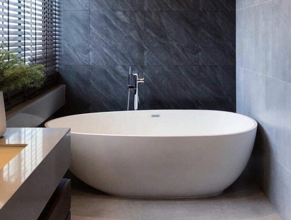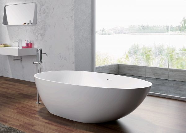 The Olivia freestanding bath is made from our eco-friendly non-porous composite stone material. Created from our unique blend of reclaimed marble, limestone and engineered resins, our composite stone offers great heat retention, durability, and is environmentally friendly. This carefully handcrafted material results in a finished product that looks exquisite while also being practical and long lasting.